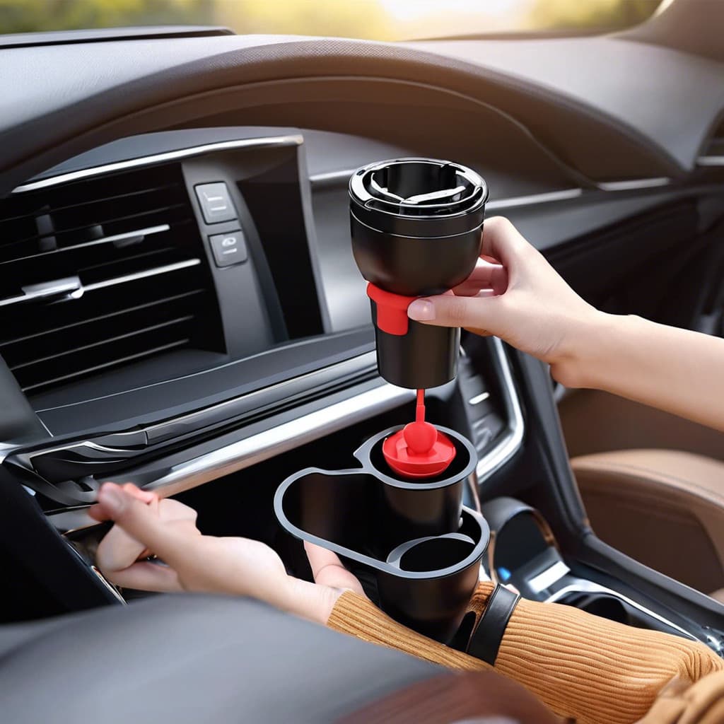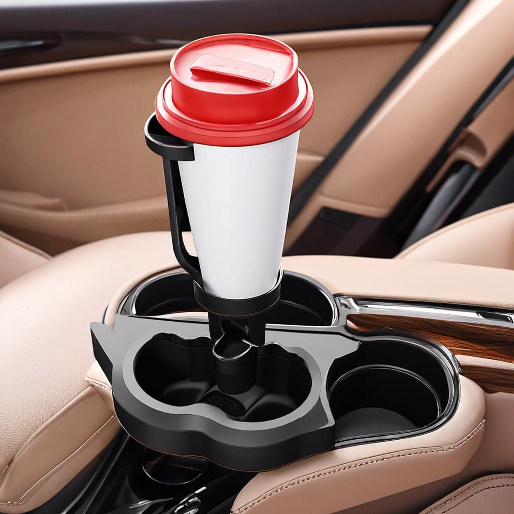 An adjustable holder to securely fit larger bottles or cups in your car.